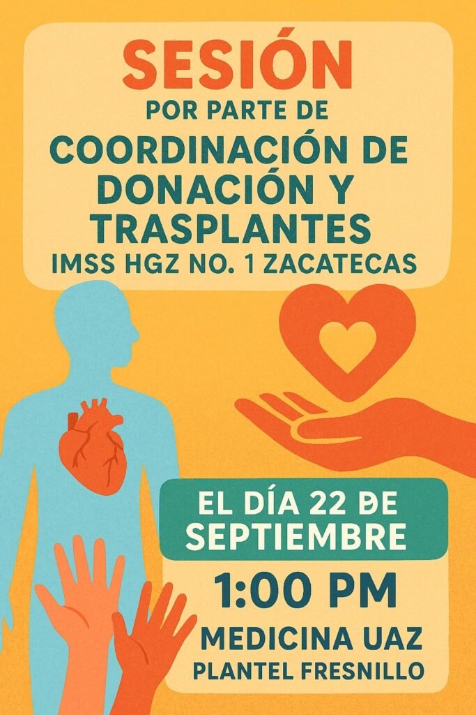 En el marco de la semana Nacional de la Donación y Transplante de órganos y tejidos del 22 al 26 de septiembre, se llevó a cabo una charla informativa en Medicina Humana Extensión Fresnillo.
